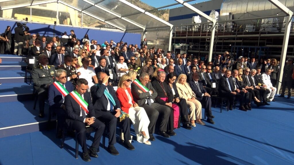 Nell’arco di due anni e mezzo è stato completato un progetto che vede la Regione Siciliana, prima in Italia, a essere totalmente proprietaria di un’unità di questo tipo. Il traghetto avrà una lunghezza di circa 140 metri e circa 14.500 tonnellate di stazza lorda. Potrà raggiungere i 19 nodi di velocità massima, una capacità di mille persone e di 195 automobili e 40 camion a bordo. Per il presidente della Regione Siciliana Renato Schifani. “Quella di oggi (ieri, ndr) è una bella giornata. Abbiamo investito noi. Abbiamo voluto questa nave realizzata dalla Fincantieri e dalle manovalanze siciliane. Ringrazio l’amministratore delegato Forgieri per la sua presenza. E’ una festa per tutti i siciliani, i quali potranno beneficiare di migliori trasporti da e verso le isole Pelagie. E’ un loro diritto e con questo traghetto rispondiamo alle loro esigenze“. “E’ un progetto che rilancerà i collegamenti con le isole minori. Avrà la possibilità di stanziare – ha dichiarato l’assessore regionale alle Infrastrutture Alessandro Aricò – nei porti siciliani oltre quattro ore senza emettere anadride carbonica. Si parla di duemila posti, con la possibilità di utilizzare decine di auto e mezzi pesanti. Si è predisposto un progetto innovativo che migliorerà l’ospitalità per i passeggeri. Un ottimo biglietto da visita per i siciliani e per i tanti turisti che passeranno qui le vacanze. A breve, con il presidente della Regione e con il Governo nazionale, si stabilirà come poter attingere ad ulteriori risorse per costruire una seconda nave“. Per l’amministratore delegato Pierroberto Folgiero, “si tratta un momento molto importante per Fincantieri. E’ una nuova costruzione caratterizzata da tanta tradizione ma anche da capacità di innovare. Questo traghetto ha le migliori tecnologie sotto il profilo della transizione energetica: l’utilizzo di gas naturale liquefatto, pannelli solari per la produzione ibrida, soluzioni spinte sull’acquisto di componenti da aziende siciliane ed italiane. E’ un bellissimo esempio della nostra cantieristica“.
